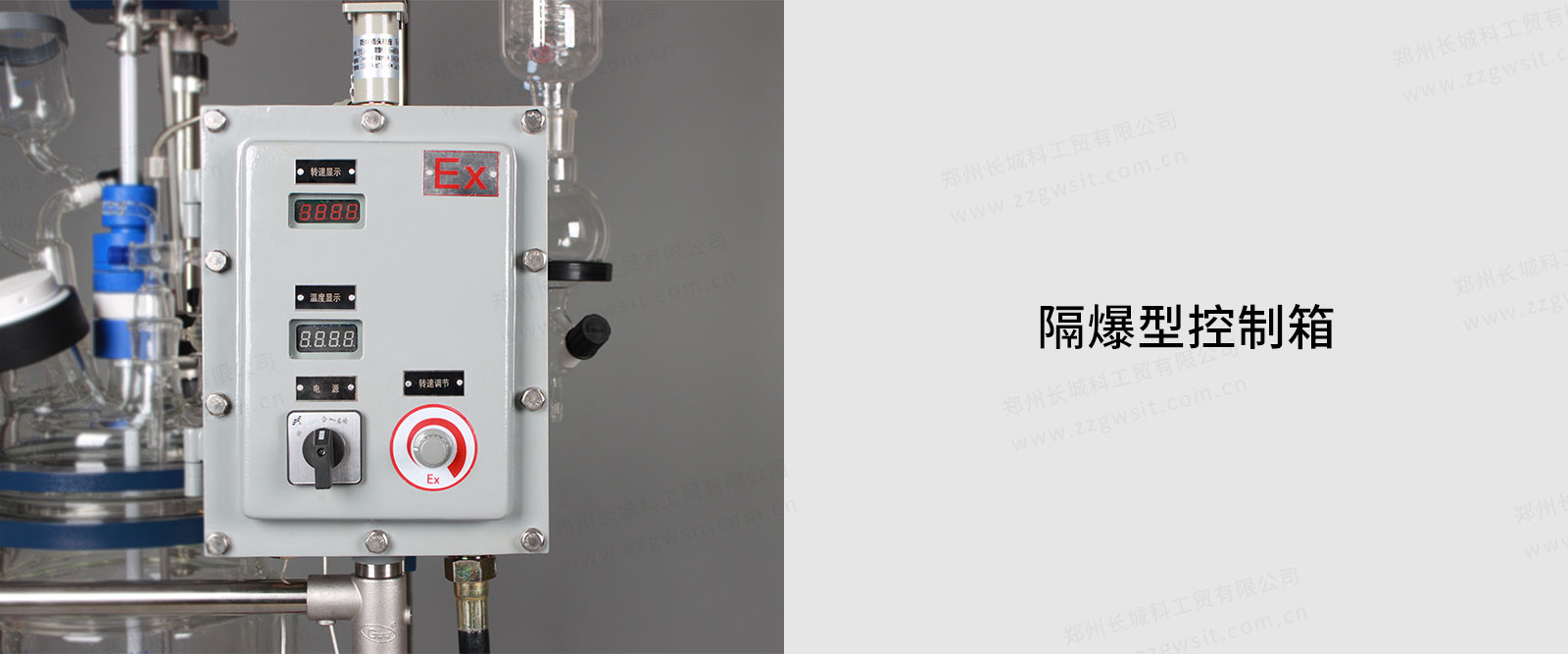 GR系列防爆玻璃反應釜型號有GR-5Ex,GR-10Ex,GR-20Ex,GR-30Ex,GR-50Ex,GR-80Ex,GR-100Ex,釜內容積分別是5L,10L,20L,30L,50L,80L,100L。
